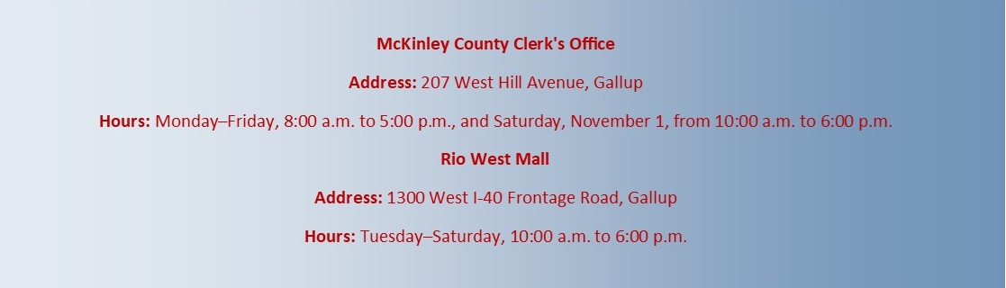 For the Gallup, New Mexico mayoral election on November 4, 2025, residents can vote in person at several early voting locations or at one of the Voter Convenience Centers on Election Day.