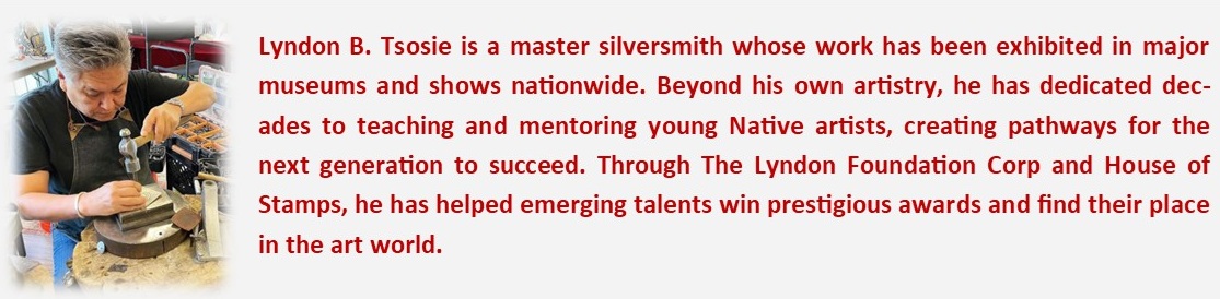 Lyndon Tsosie is a celebrated Navajo silversmith and jewelry designer hailing from Tohatchi, New Mexico, born in 1968. He began creating jewelry in the early 1990s and has since become internationally known for his exquisite, handcrafted pieces.